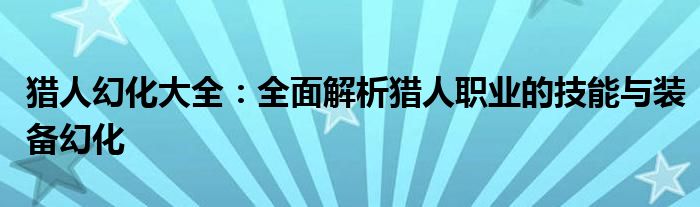 本文将围绕“猎人幻化大全”这一主题,全面解析猎人职业的技能特点以及装备幻化方面的知识。我们将深入探讨猎人职业在游戏中的定位、技能组合、特色装备以及幻化外观等方面,帮助玩家更好地理解和玩转猎人这一职业。