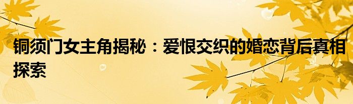 铜须门女主角揭秘:爱恨交织的婚恋背后真相探索
