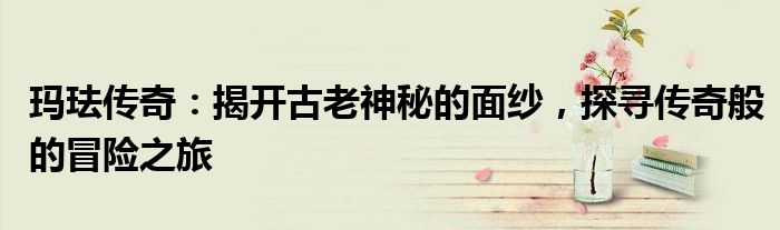 玛珐传奇:揭开古老神秘的面纱,探寻传奇般的冒险之旅
