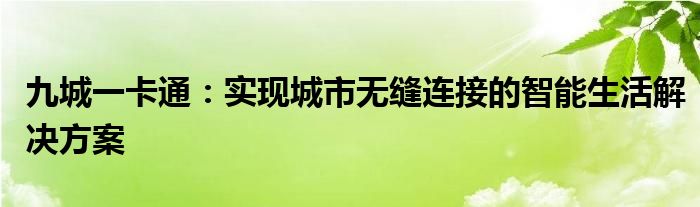 九城一卡通:实现城市无缝连接的智能生活解决方案