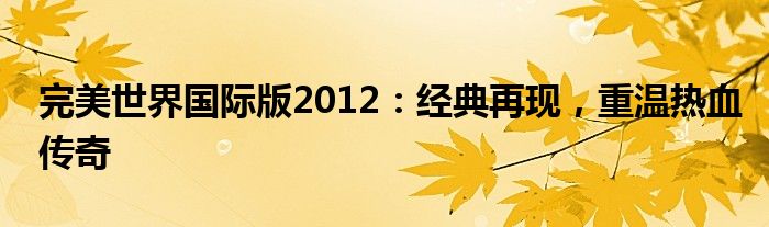 随着游戏技术的不断进步,越来越多的游戏开始推陈出新,展现出各种各样的风貌。然而,一些经典的游戏版本仍然让人难以忘怀,其中就包括“完美世界国际版2012”。这款游戏以其独特的魅力,吸引了无数玩家的目光,成为了当年最热门的网络游戏之一。