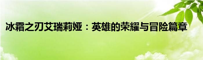 冰霜之刃艾瑞莉娅:英雄的荣耀与冒险篇章