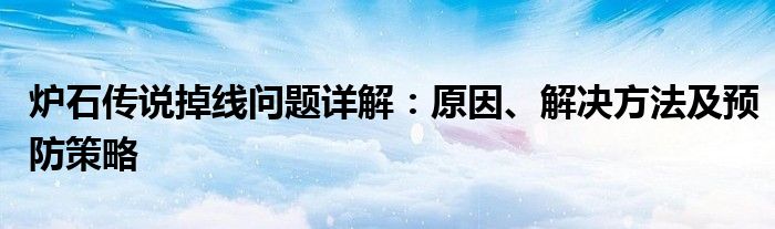 炉石传说掉线问题详解:原因、解决方法及预防策略