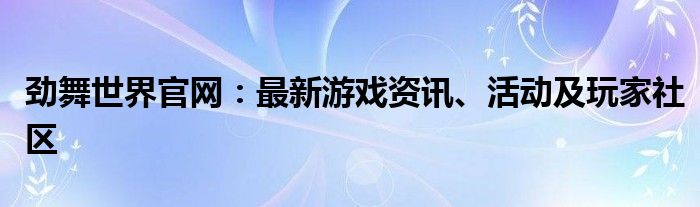 劲舞世界官网:最新游戏资讯、活动及玩家社区