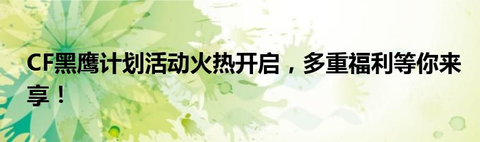 CF黑鹰计划活动火热开启,多重福利等你来享!