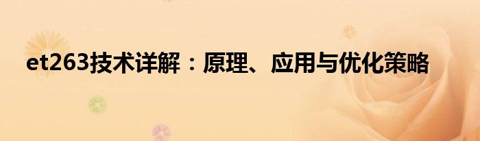 随着信息技术的飞速发展,各种新技术层出不穷,其中et263技术引起了广泛关注。本文将详细介绍et263技术的原理、应用以及优化策略,帮助读者更好地理解和应用这一技术。