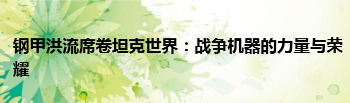 总之,《坦克世界》中的“钢甲洪流坦克世界”为玩家们展现了一个充满战争机器的世界。在这个世界里,玩家们可以感受到坦克的威力与荣耀,体验到指挥战斗的乐趣和挑战。让我们一起加入这个充满战火与荣耀的世界吧!
