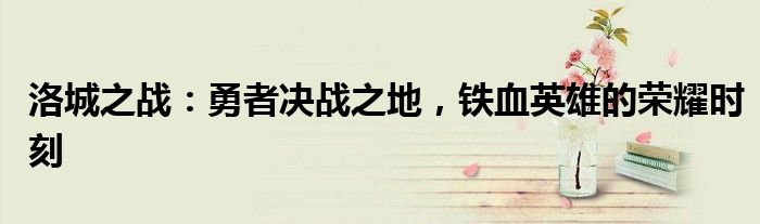 洛城之战:勇者决战之地,铁血英雄的荣耀时刻