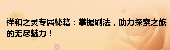 祥和之灵专属秘籍:掌握刷法,助力探索之旅的无尽魅力!