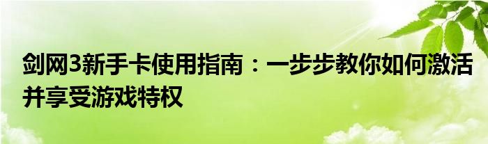 《剑网3》作为一款受欢迎的网络游戏,为新手玩家提供了许多福利和特权。其中,新手卡就是一种非常重要的福利。本文将详细介绍如何正确使用剑网3新手卡,以帮助新手玩家顺利激活并享受游戏的特权。