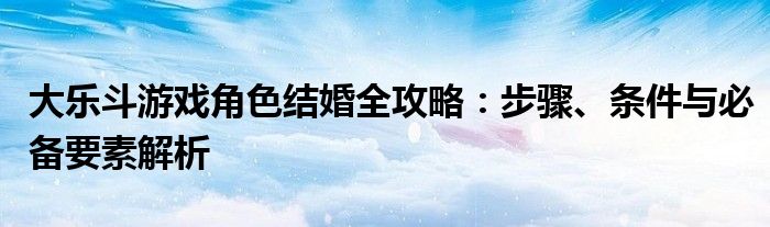 本文将详细介绍在大乐斗游戏中如何成功实现角色结婚的全过程。我们将涵盖结婚的基本步骤、所需条件以及必备要素,帮助玩家顺利达成游戏中的婚姻愿望。