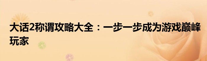 大话2称谓攻略大全:一步一步成为游戏巅峰玩家