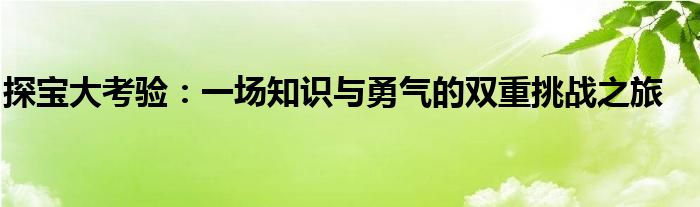 《探宝大考验:一场知识与勇气的双重挑战之旅》带您踏入一个神秘而又充满智慧的冒险世界。在这场挑战中,玩家们不仅需要灵活运用智慧解锁谜题,更需要勇气面对未知的挑战和危险。这是一场考验智慧与胆识的冒险旅程。