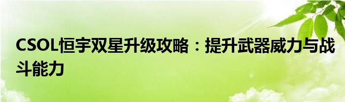 CSOL恒宇双星升级攻略:提升武器威力与战斗能力