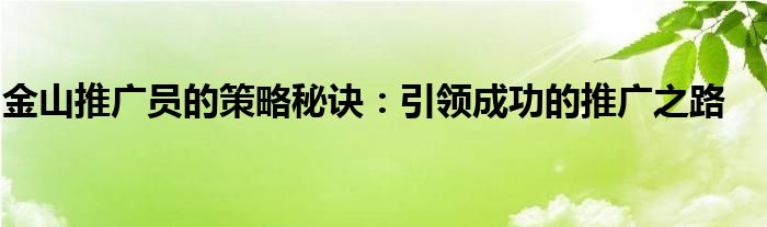 作为金山推广员,我们需要不断学习和探索更有效的推广策略,提高产品的知名度和市场占有率。通过本文的介绍,希望广大金山推广员能够掌握更多的技能和知识,为金山的软件产品发展贡献力量。让我们一起努力,成为引领成功的金山推广员!