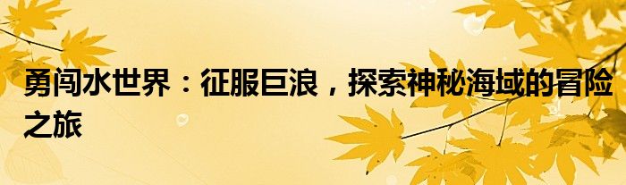 《勇闯水世界:征服巨浪,探索神秘海域的冒险之旅》将带你领略一场惊心动魄的水上冒险。在这个充满神秘与惊喜的水世界中,你将面对巨大的挑战,克服重重困难,展现你的勇气与智慧。