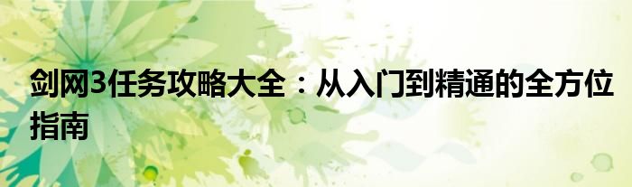 本文旨在为剑网3玩家提供全面的任务攻略,帮助玩家更好地完成任务,提升游戏体验。希望本文能对广大剑网3玩家有所帮助。