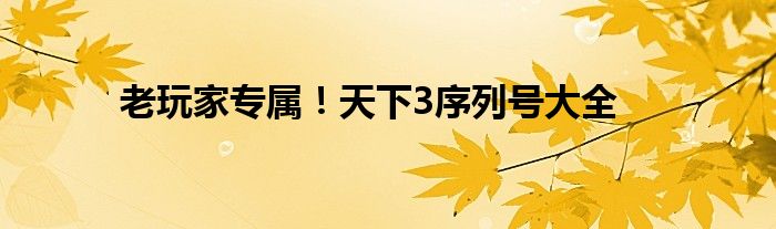 以上就是关于《天下3》老玩家序列号的全部内容,希望能够帮助你找回那些珍贵的游戏回忆。作为一位老玩家,你是否还有其他独特的序列号分享给我们呢?