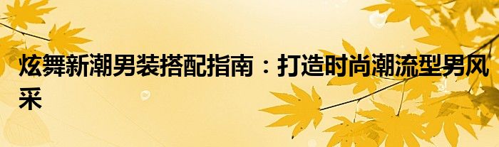炫舞新潮男装搭配指南:打造时尚潮流型男风采