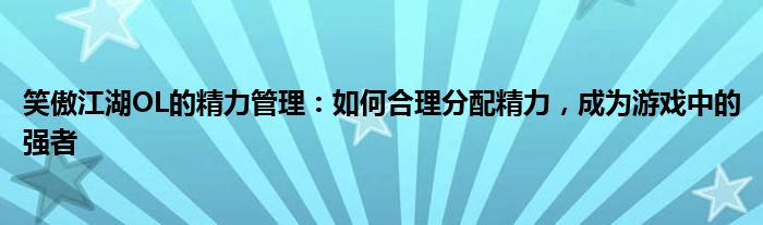 笑傲江湖OL的精力管理:如何合理分配精力,成为游戏中的强者