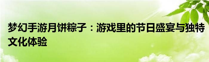 梦幻手游月饼粽子:游戏里的节日盛宴与独特文化体验