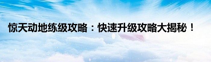 惊天动地练级攻略:快速升级攻略大揭秘!