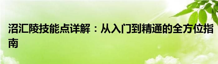 沼汇陵技能点详解:从入门到精通的全方位指南