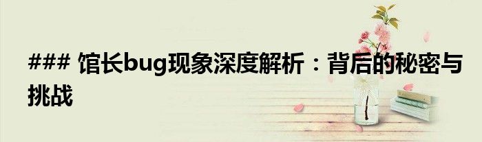 ### 馆长bug现象深度解析:背后的秘密与挑战