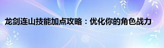 在龙剑连山这款游戏中,技能加点对于角色战斗力的提升至关重要。如何合理分配技能点,发挥出最大的战斗力,是每位玩家都需要掌握的技能。本文将为大家详细介绍龙剑连山技能加点的攻略,帮助大家更好地提升自己的角色战力。