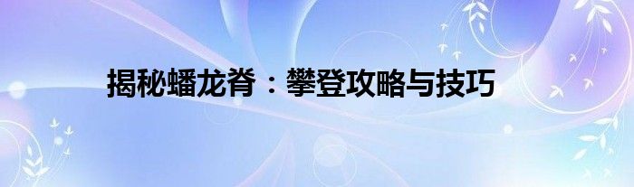 蟠龙脊,这个充满神秘色彩的名字,往往让人联想到陡峭的山脊和崎岖的山路。对于许多登山爱好者来说,攀登蟠龙脊无疑是一种挑战和冒险。本文将为你提供一份详细的攀登攻略,帮助你顺利登顶蟠龙脊。