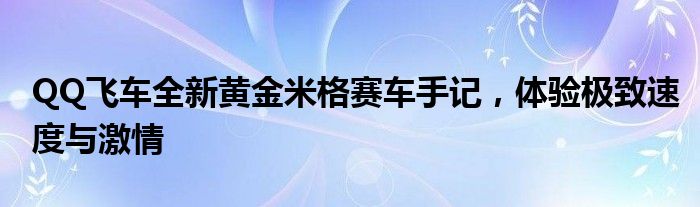 QQ飞车全新黄金米格赛车手记,体验极致速度与激情