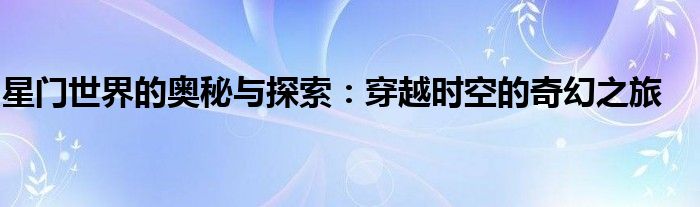 星门世界的奥秘与探索:穿越时空的奇幻之旅