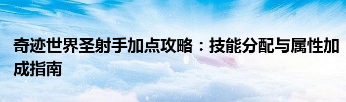 本文将详细介绍在奇迹世界中,圣射手角色的技能加点与属性加成策略。通过合理的技能分配和属性加成,玩家可以更好地发挥圣射手的特点,提升战斗能力。本文将分为技能加点和属性加成两部分进行详细阐述。