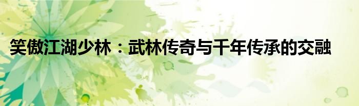 总之,“笑傲江湖少林”这一主题展现出了传奇与现实、历史与文化的交融之美。通过探讨这一主题,我们可以更深入地了解中华武林的博大精深和传统文化的深厚底蕴。