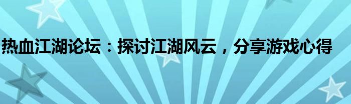 热血江湖论坛:探讨江湖风云,分享游戏心得