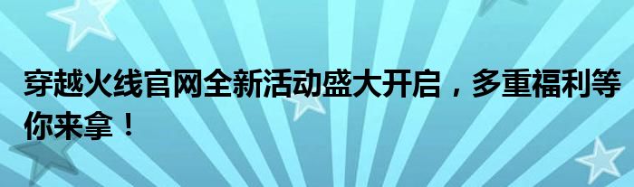 尊敬的《穿越火线》玩家们,大家好!我们非常高兴宣布,《穿越火线》官网全新活动现已盛大开启!此次活动特别为所有热爱《穿越火线》的玩家精心准备,多重福利等你来拿,不容错过!