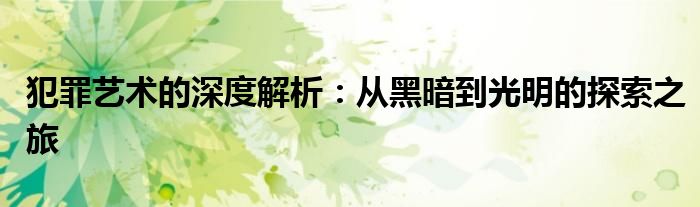 犯罪艺术的深度解析:从黑暗到光明的探索之旅