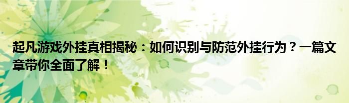 起凡游戏外挂真相揭秘:如何识别与防范外挂行为?一篇文章带你全面了解!