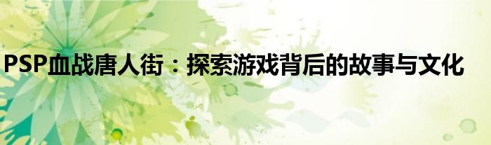 PSP血战唐人街:探索游戏背后的故事与文化