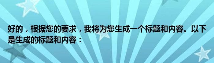 好的,根据您的要求,我将为您生成一个标题和内容。以下是生成的标题和内容: