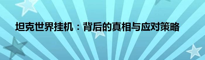 本文将探讨游戏《坦克世界》中挂机现象的真相以及应对策略。我们将深入了解坦克世界挂机背后的原因,分析其影响和可能产生的风险,并为玩家提供有效的解决方法和建议。本文旨在提高玩家对游戏行为的认知,促进健康的游戏环境。