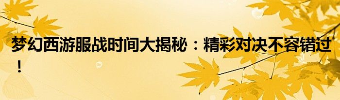 梦幻西游服战时间大揭秘:精彩对决不容错过!