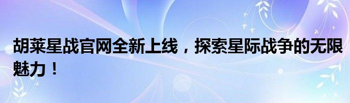 胡莱星战官网全新上线,探索星际战争的无限魅力!