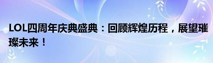 LOL四周年庆典盛典:回顾辉煌历程,展望璀璨未来!
