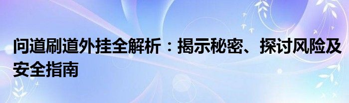 问道刷道外挂全解析:揭示秘密、探讨风险及安全指南