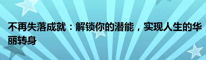 不再失落成就:解锁你的潜能,实现人生的华丽转身