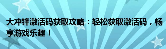 本文将为大家介绍如何获取大冲锋游戏的激活码,包括官方渠道、合作伙伴活动以及其他可能的途径。帮助玩家轻松获得激活码,顺利体验游戏。