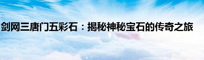 剑网三唐门五彩石:揭秘神秘宝石的传奇之旅