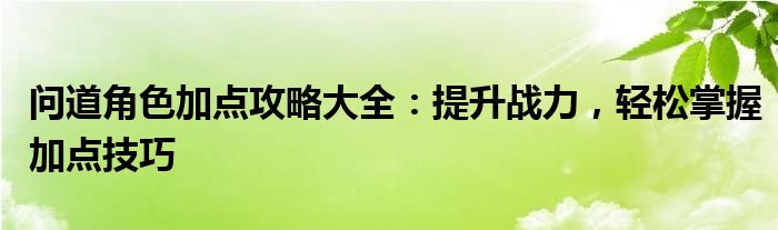 本篇文章为您带来关于“问道”游戏的角色加点攻略。通过合理的加点,可以有效提升角色的战斗能力,让您在游戏中更加游刃有余。本文将详细介绍各种角色的加点方法,助您轻松掌握加点技巧。