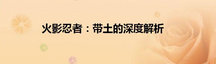 本文将对《火影忍者》中的重要角色——带土进行深入解析。带土作为忍者世界中的一位重要人物,其独特的性格、复杂的人生经历以及深藏不露的能力,都使他成为众多粉丝心中的热门话题。